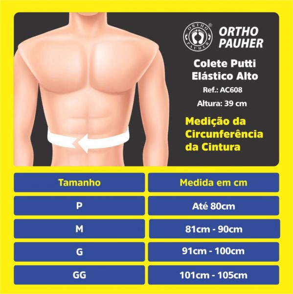 O COLETE PUTTI ALTO (AC608) auxilia no tratamento de patologias da coluna vertebral, estabilização da região dorso-lombar-sacral, sendo ideal para casos de hérnia, traumatismos, contraturas musculares pós-traumática, artrose, espondilite, fraturas osteoporóticas, estabilização do tronco lesado medular, pós-operatório, fadiga e outras afecções da região. O COLETE PUTTI BAIXO (AC617) , auxilia no tratamento de patologias da coluna vertebral, estabilização da região dorso-lombos-sacral, sendo ideal para casos de hérnia, traumatismos, contraturas musculares pós-traumática, artrose, espondilite, fraturas osteoporóticas, estabilização do tronco lesado medular, pós-operatório, fadiga e outras afecções da região. Projetada anatomicamente para prevenção e tratamento das afecções da região dorso-lombos-sacral a fim de oferecer estabilização, sustentação, segurança e alívio de dores.
